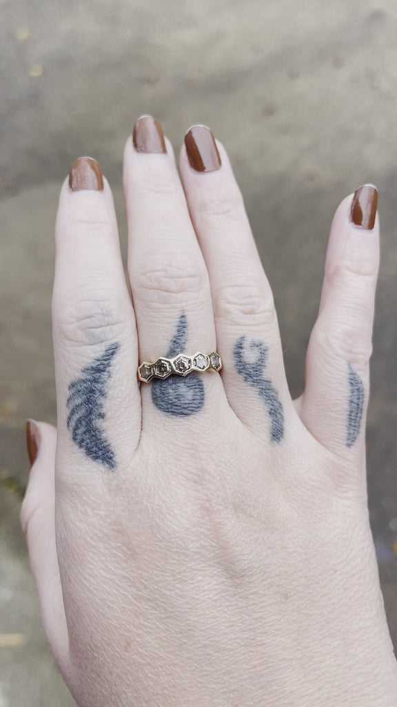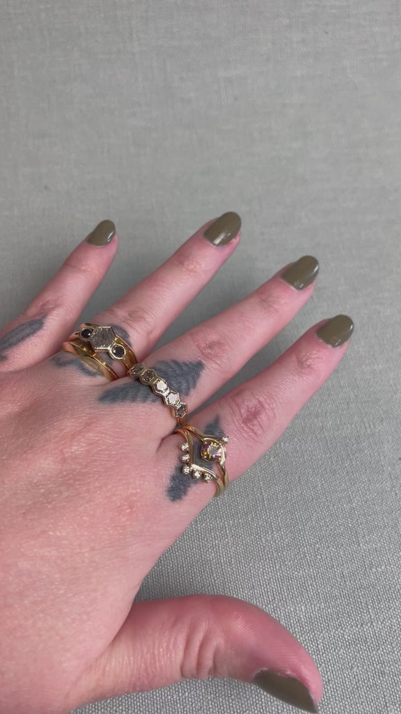 Natural Champagne Diamond hexagons sourced from Lesotho, 14k recycled yellow gold
